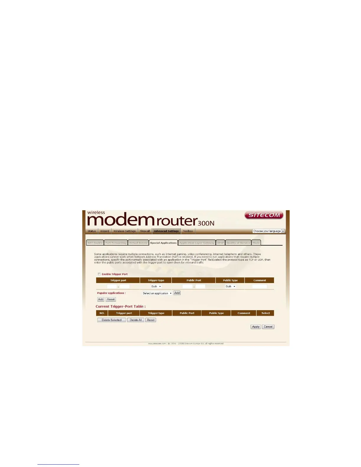 Trigger Port This is the out going (Outbound) range of port numbers for this