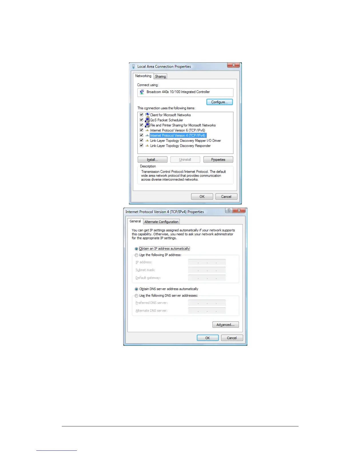 automatically] and [Obtain DNS server address automatically].