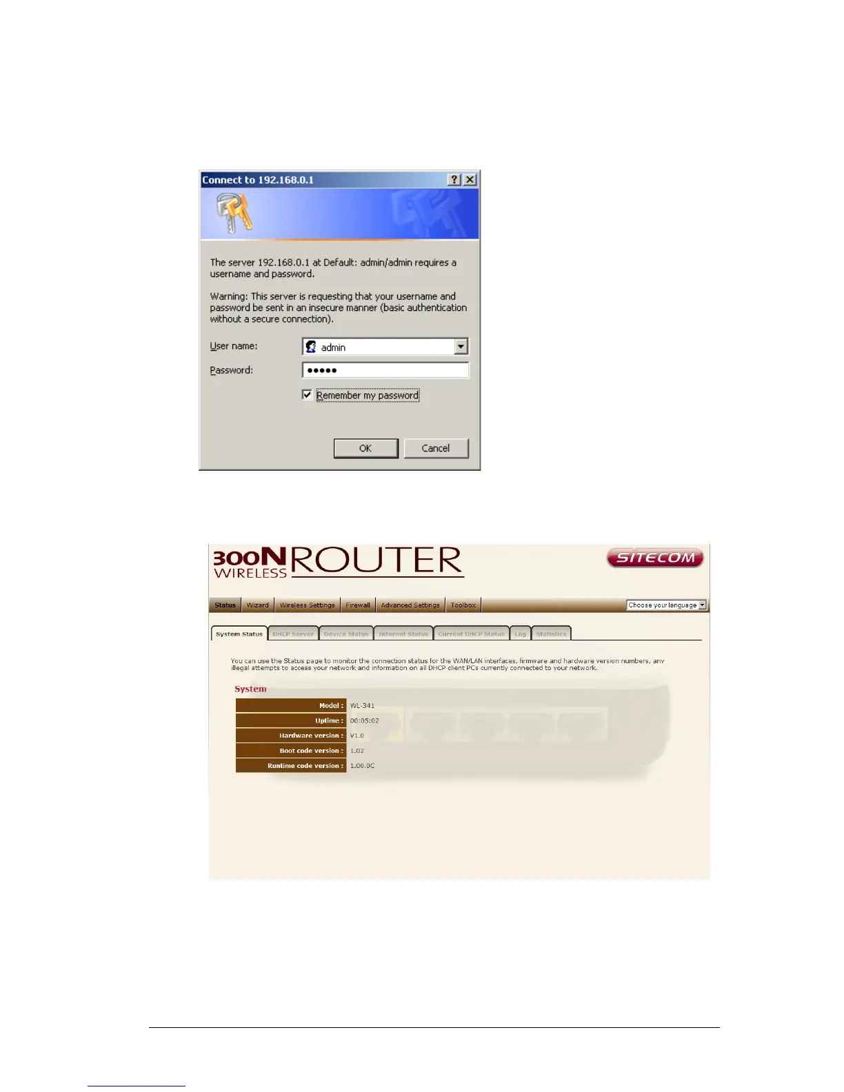 3. Type user name and password (default is admin/admin).