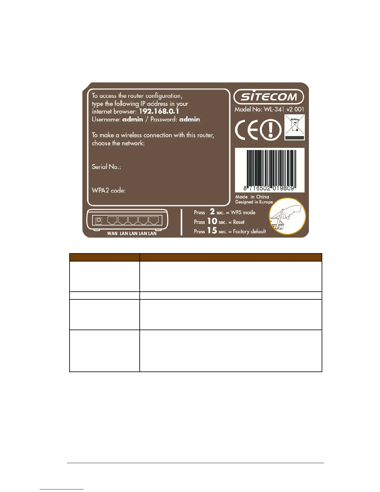 Press 2 seconds for WPS mode