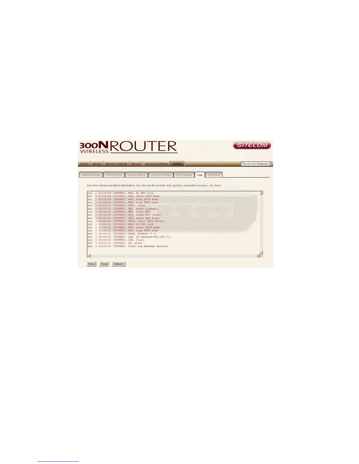 bottom of the page, the system log can be saved <Save> to a local file for