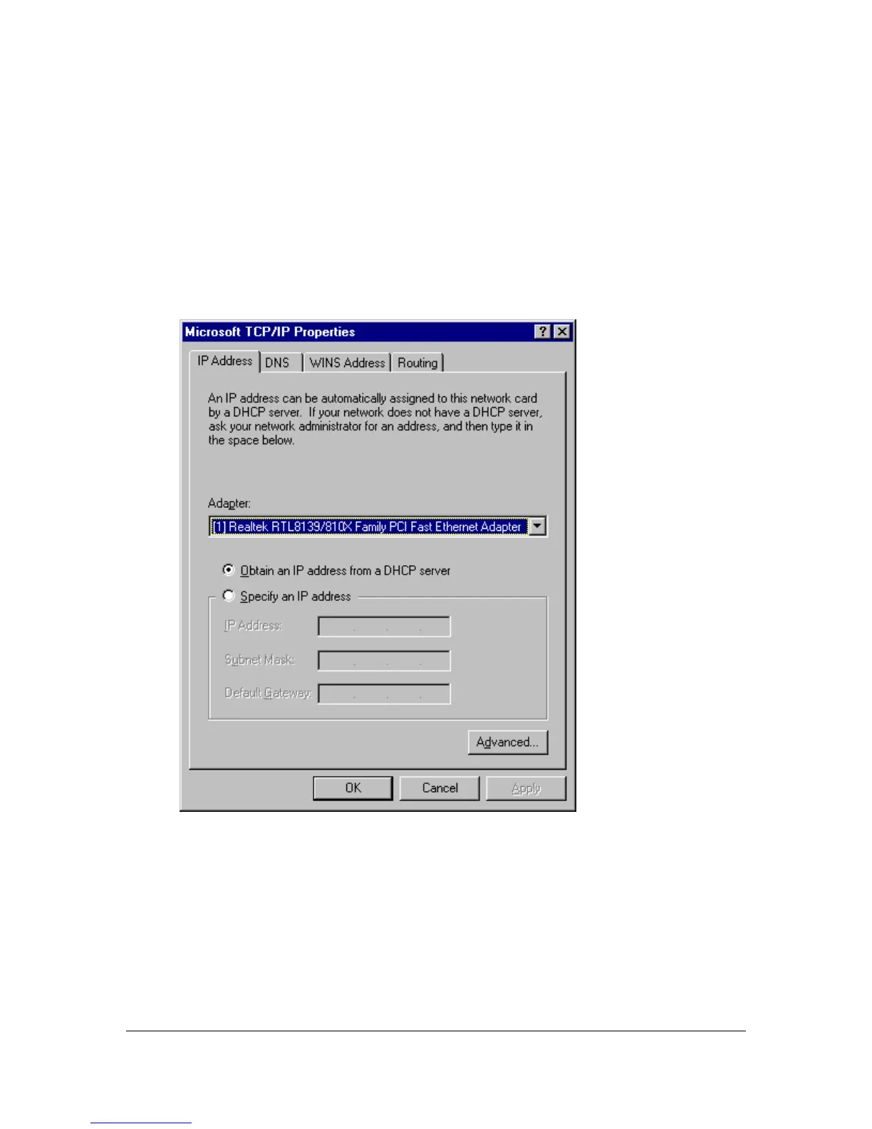 • IP Address: Select Obtain an IP address from a DHCP server.
