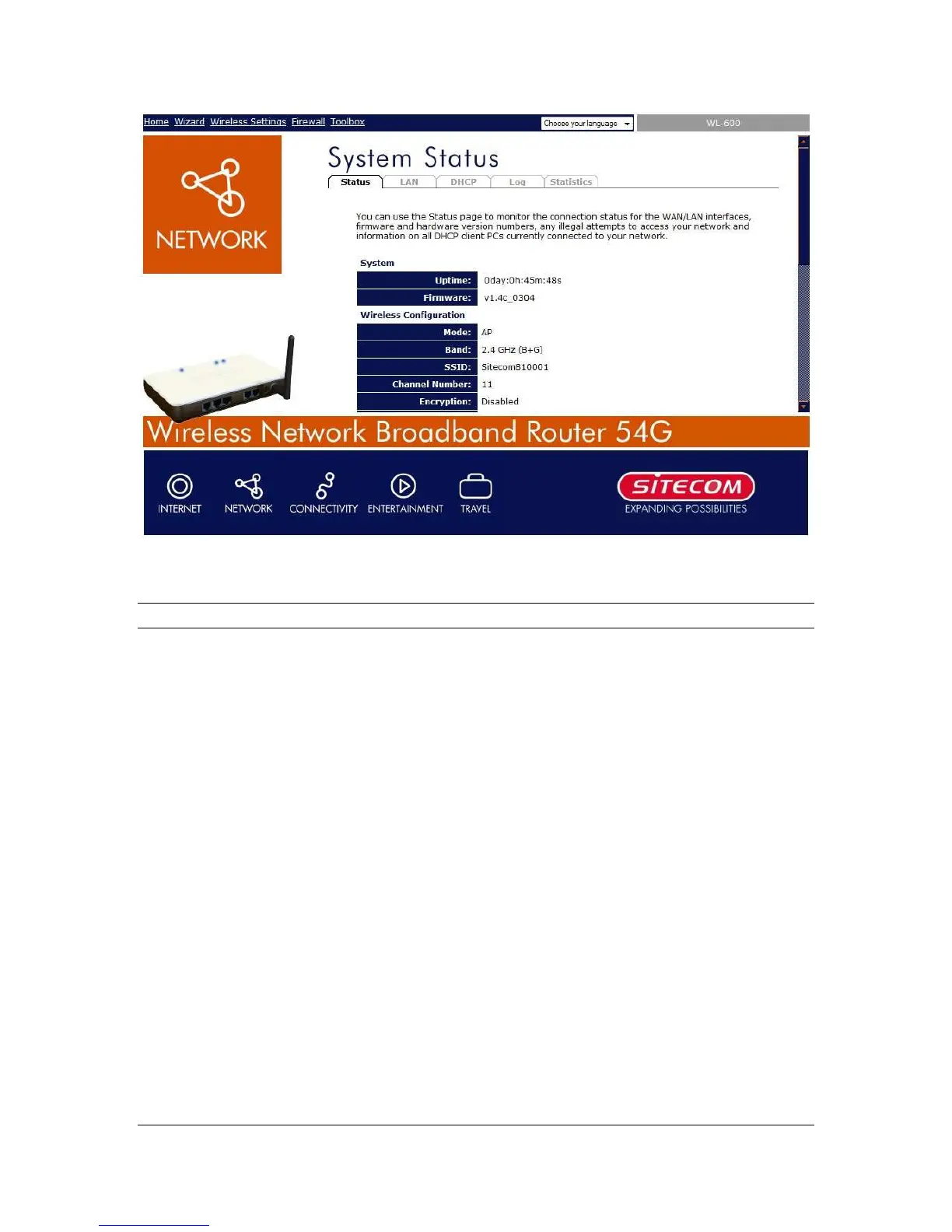 router's system information, Internet Connection,