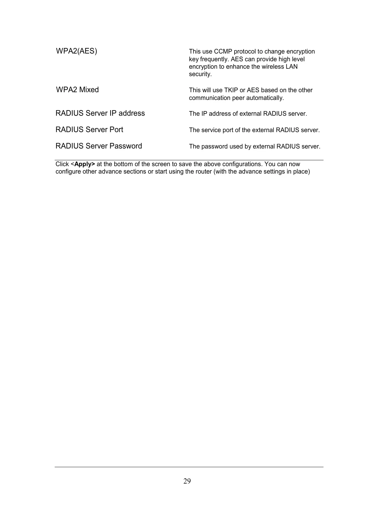 configure other advance sections or start using the router (with the advance settings in place)