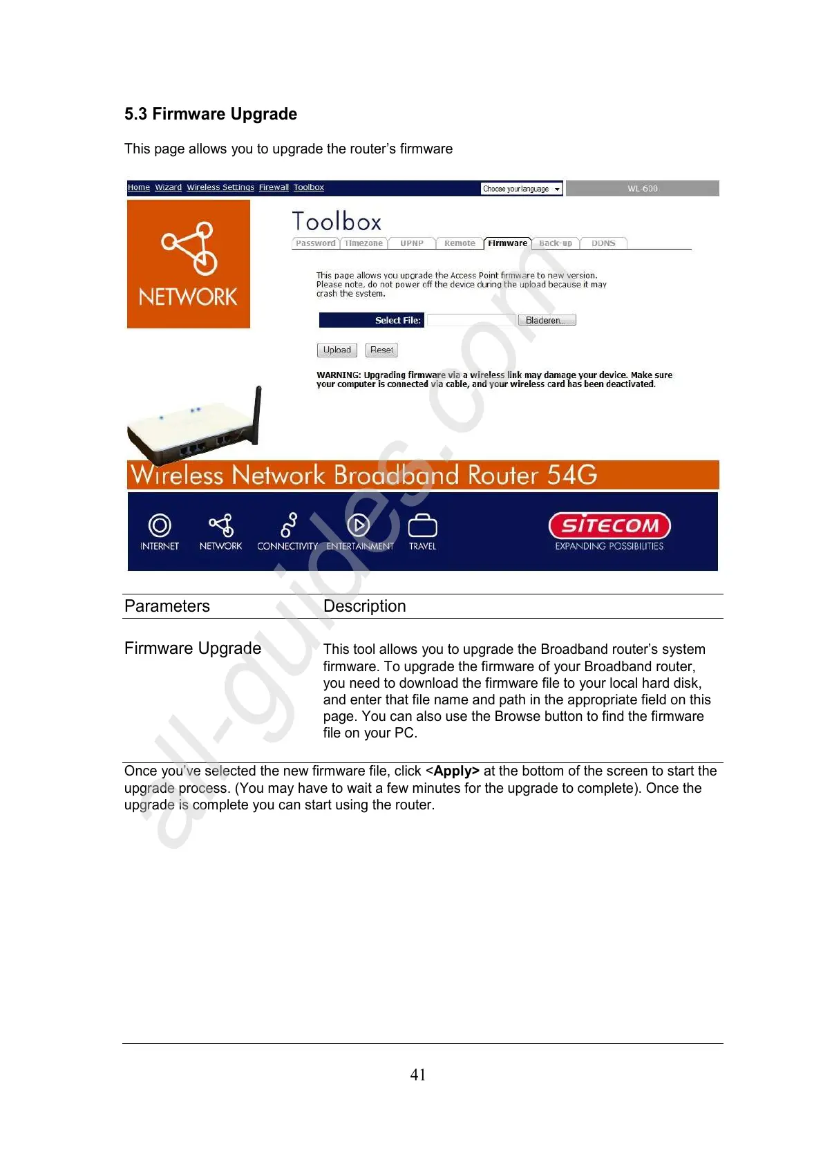 firmware. To upgrade the firmware of your Broadband router,