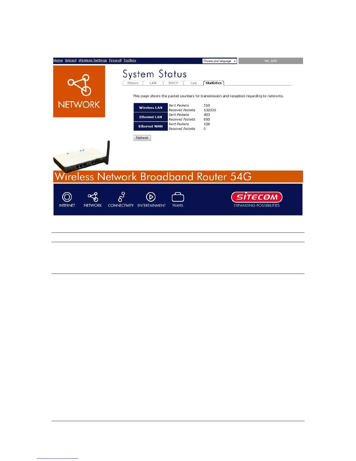 View the statistics of packets sent and received on WAN, LAN and Wireless LAN.