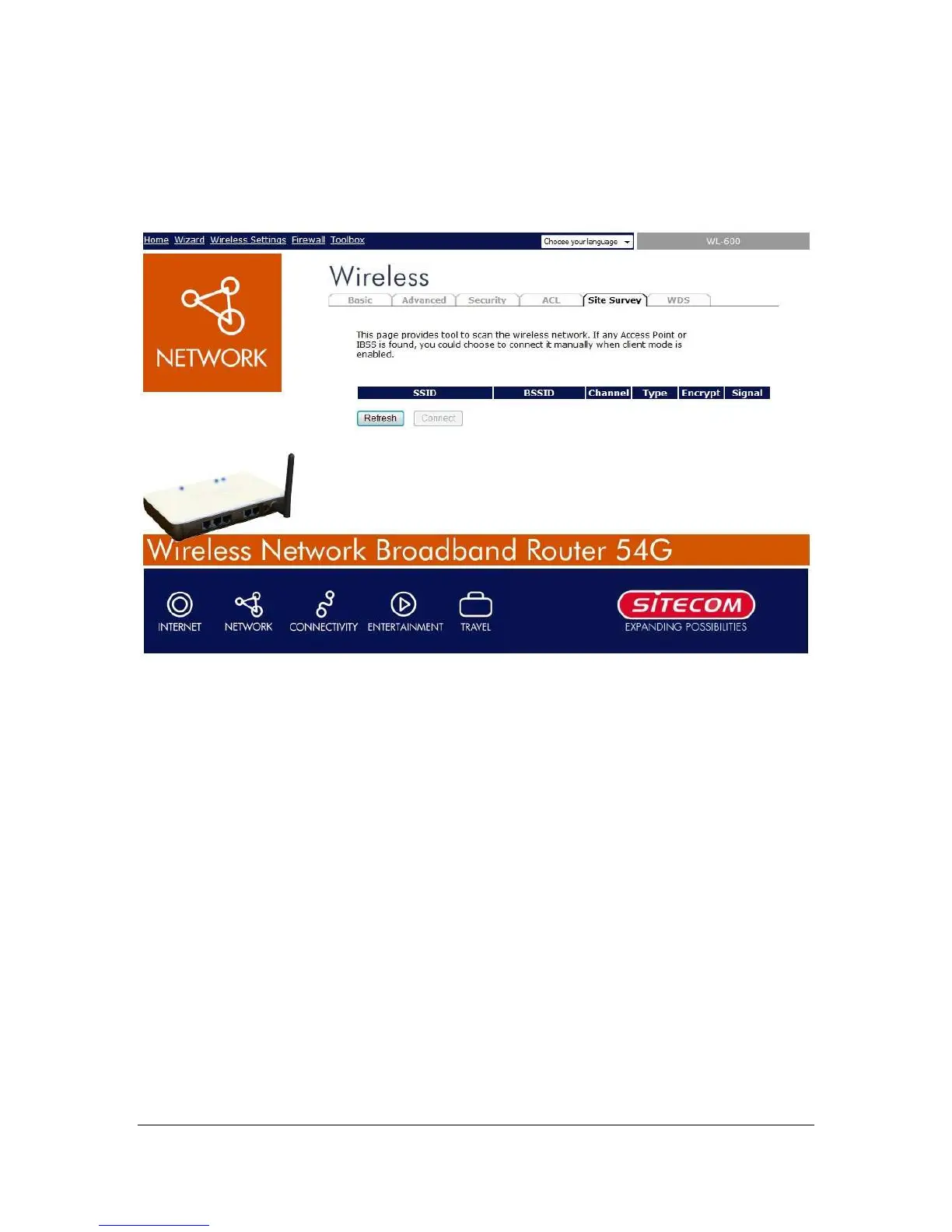 This page provides a tool to scan the wireless network. If any Access Point or IBSS is found, you