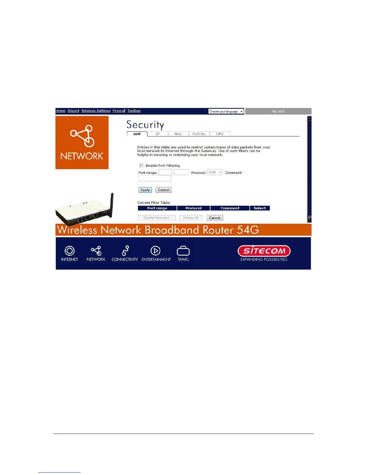 Sitecom WL-607 - Firewall; Port Filtering