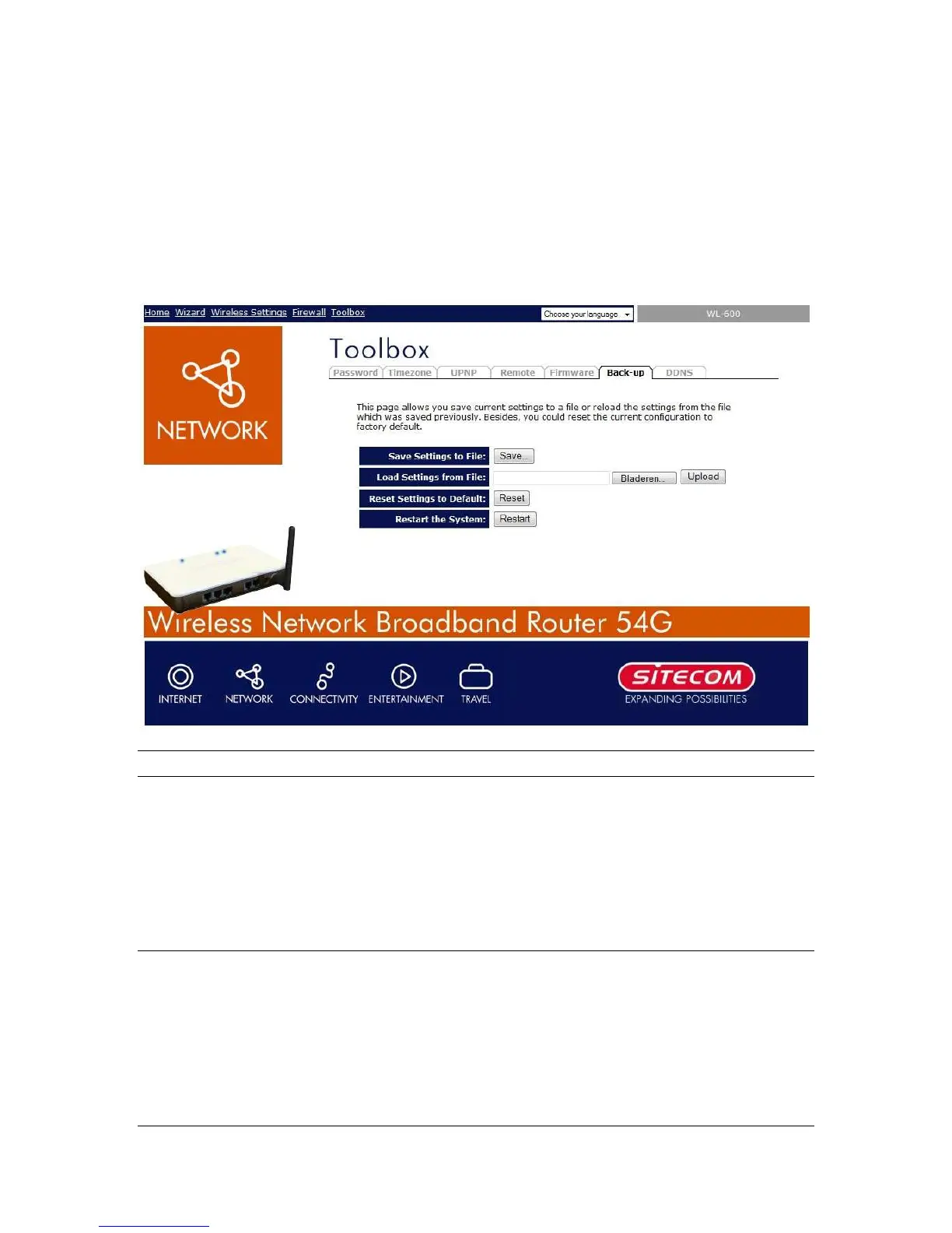 configuration setting (Backup) you can re-load the saved configuration into the router through the