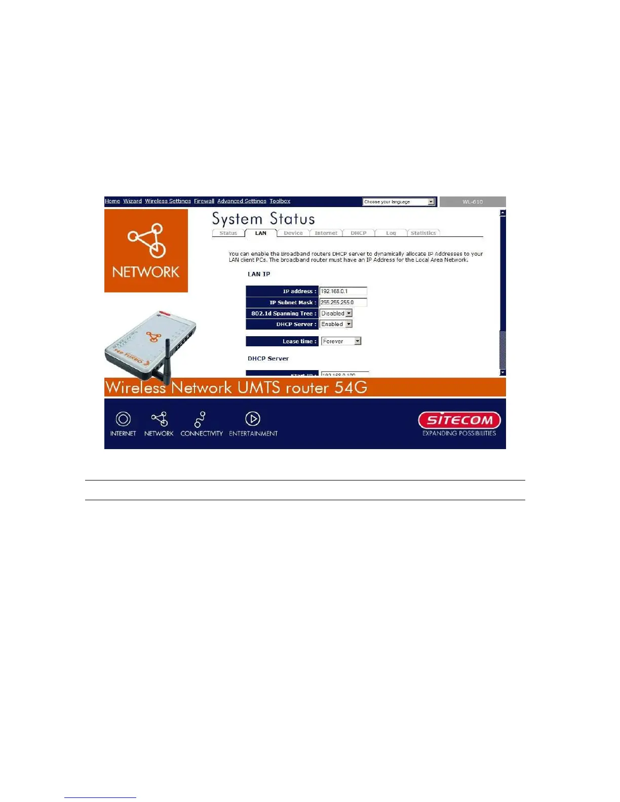 network, and information on all DHCP client PCs currently connected to your network.