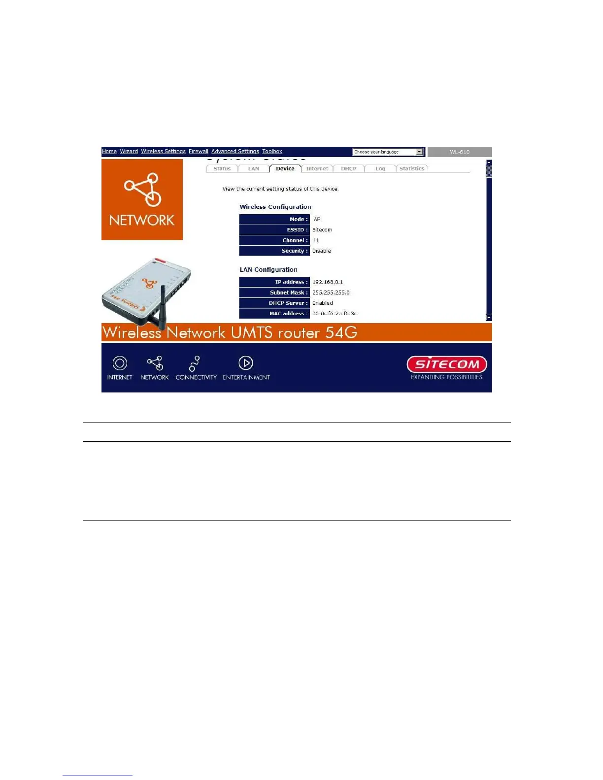 Sitecom Wireless Network UMTS Router 54G WL-610