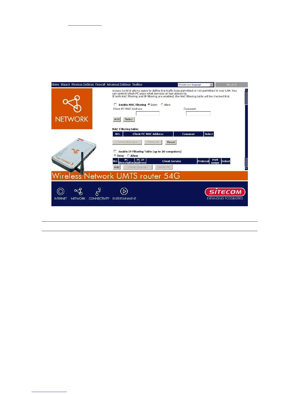 Remove PC If you want to remove some PC from the "IP Filtering Table",