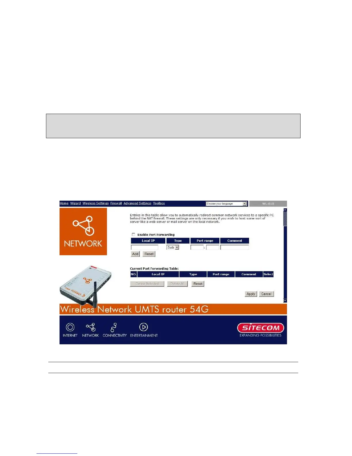 The Port Forwarding allows you to re-direct a particular range of service port numbers (from