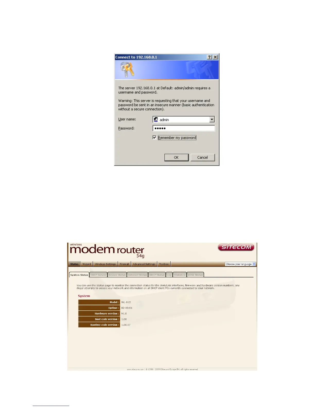 4. Type user name and password (default is admin/admin).