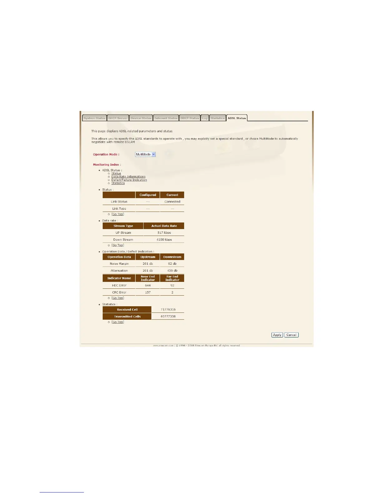 Sitecom WL-612 - Adsl Status
