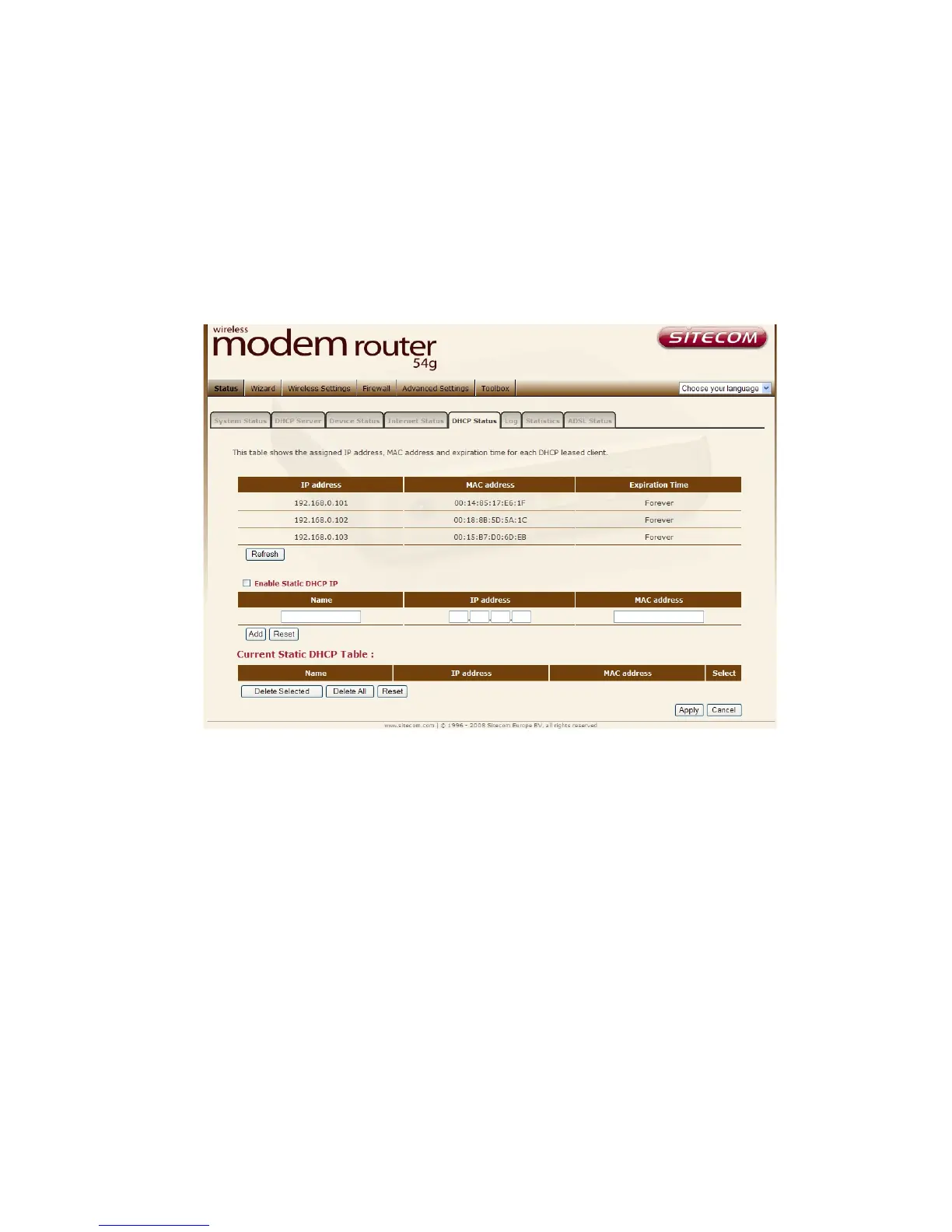 DHCP This page shows all DHCP clients (LAN PCs) currently connected to your