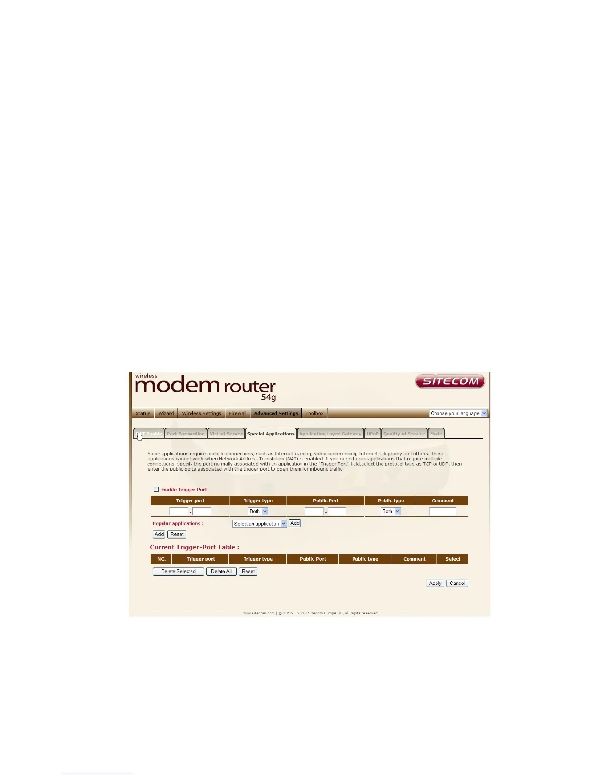 Trigger Port This is the out going (Outbound) range of port numbers for this