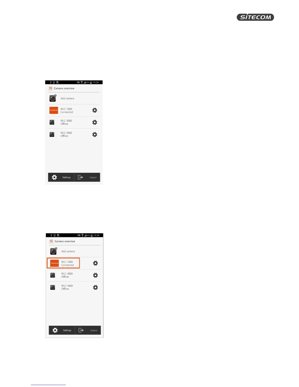 Click on the installed camera on the camera overview screen to go to the live view.