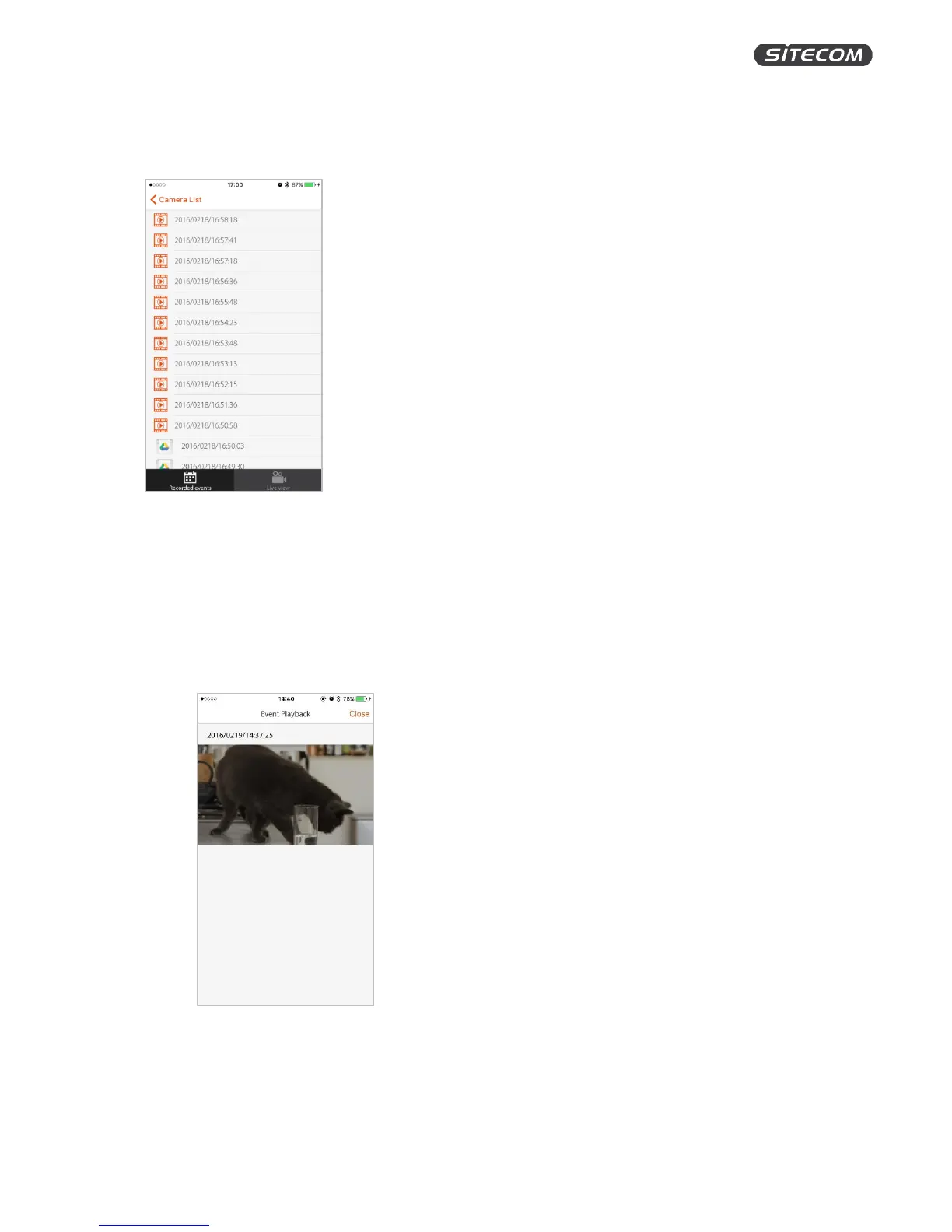 On the screen, you see an overview of all the motion and sound events that the camera recorded.
