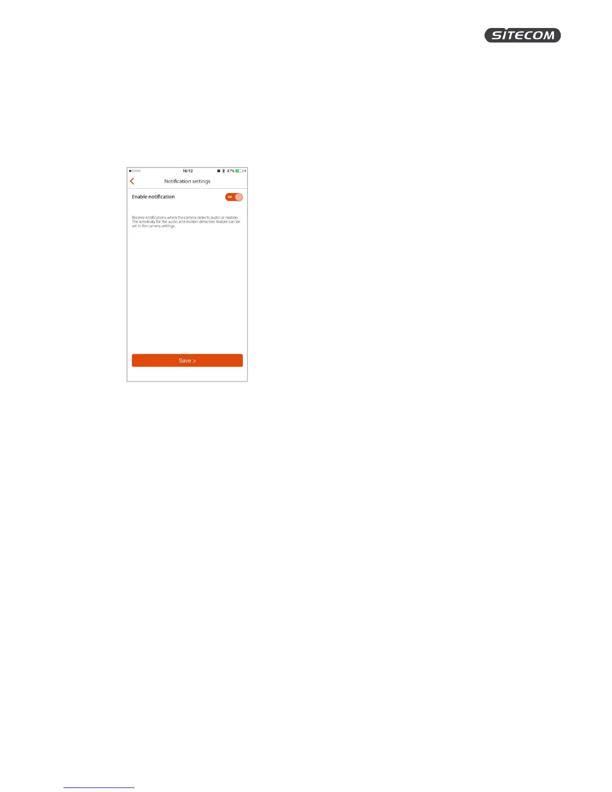 On this screen, you can turn push notifications for the Wi-Fi Home Cam on or off. You can receive a