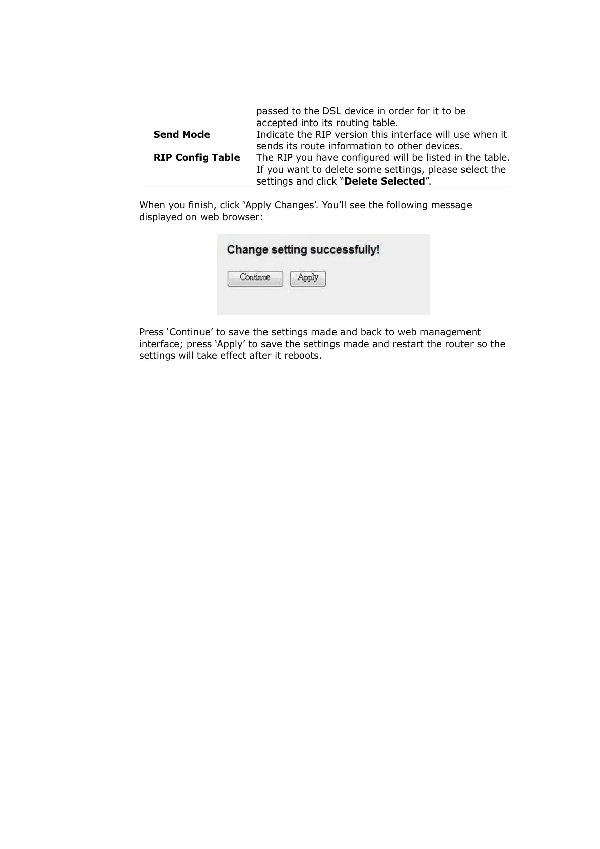 interface; press ‘Apply’ to save the settings made and restart the router so the
