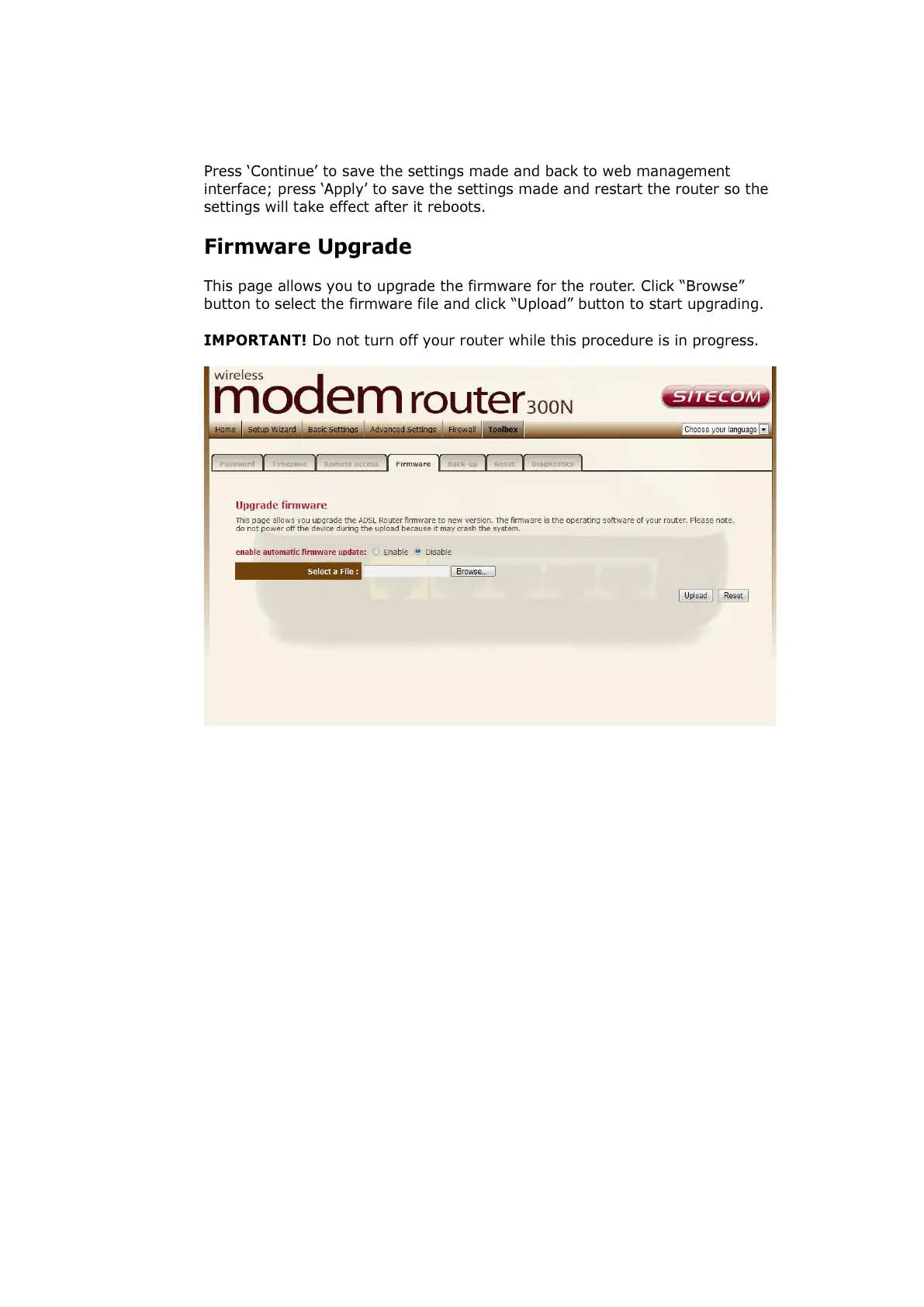 IMPORTANT! Do not turn off your router while this procedure is in progress.