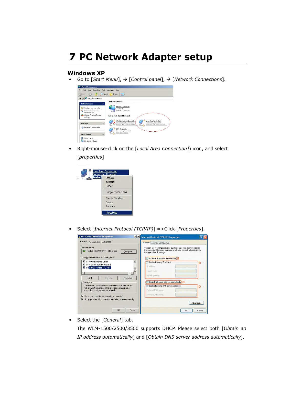 • Go to [Start Menu], [Control panel], [Network Connections].