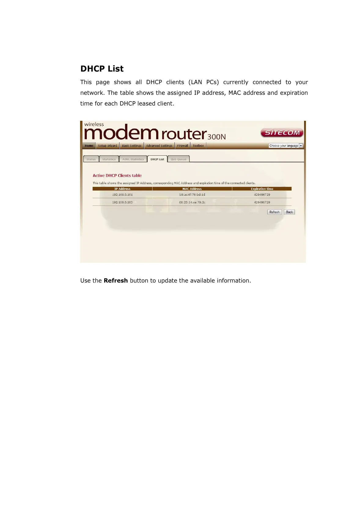 This page shows all DHCP clients (LAN PCs) currently connected to your