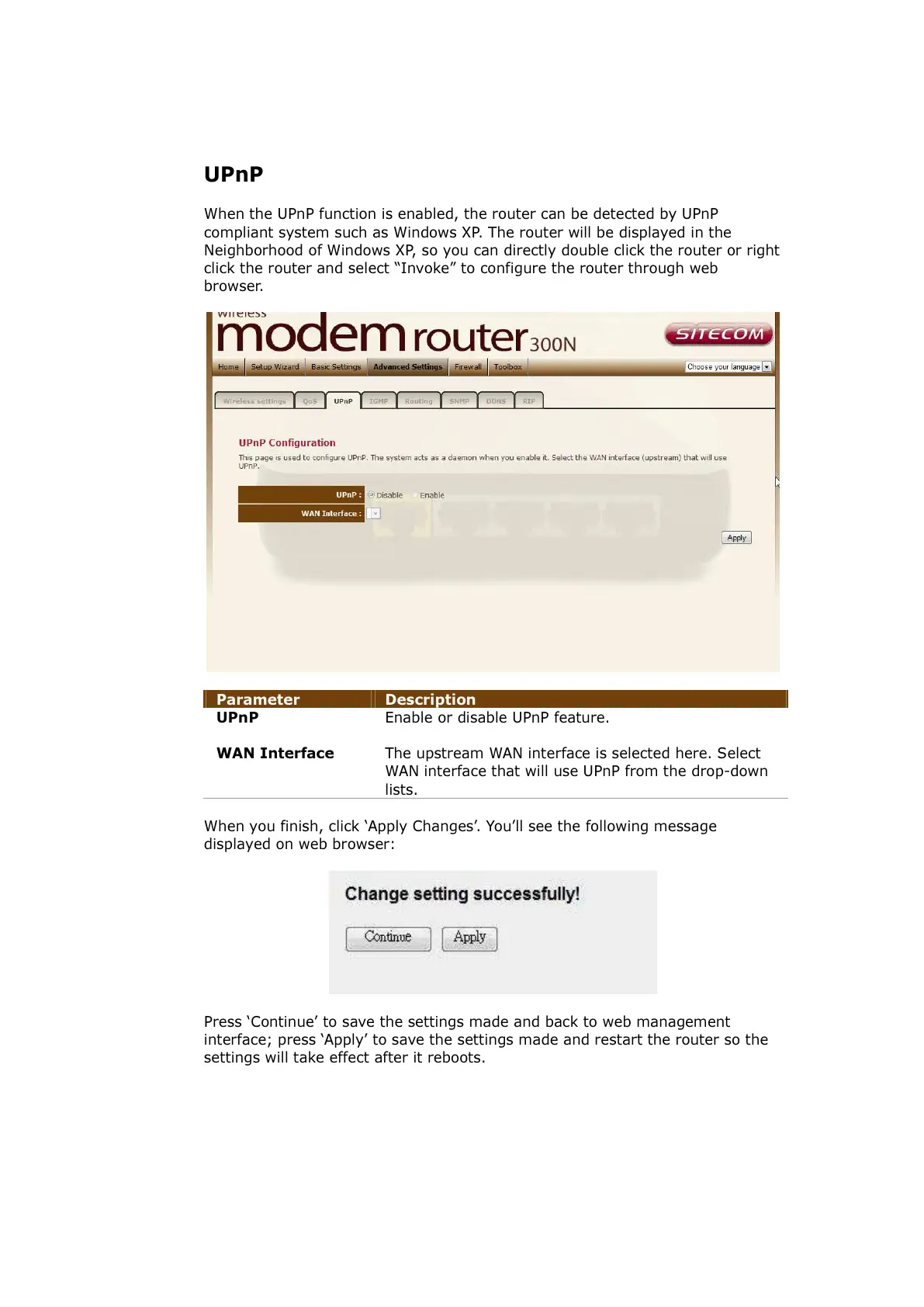 UPnP Enable or disable UPnP feature.