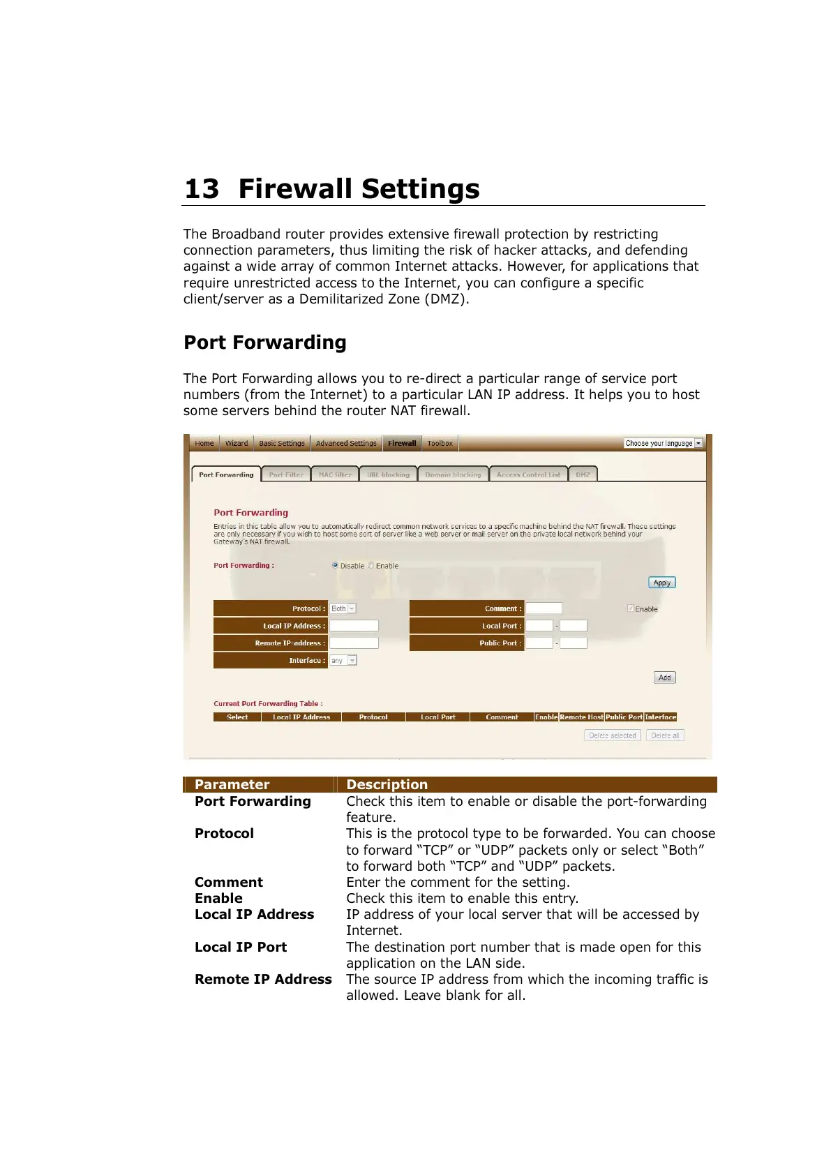Port Forwarding Check this item to enable or disable the port-forwarding