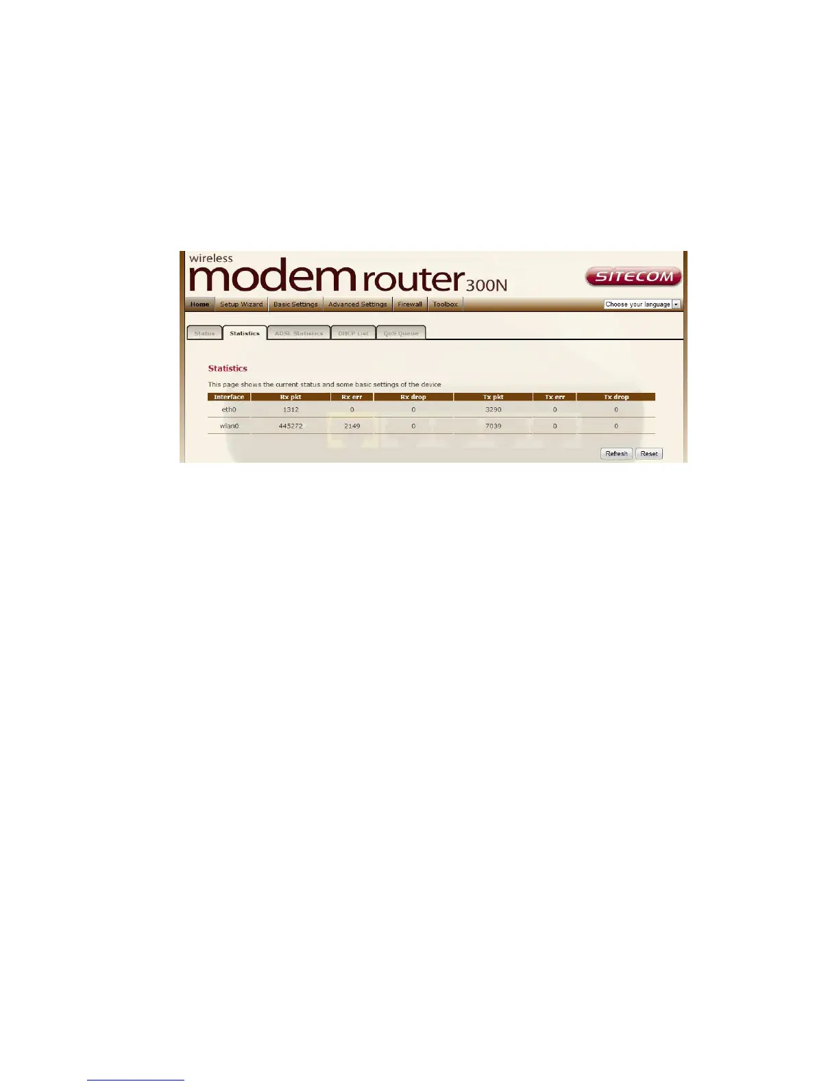 transmission problems. To display statistics for any new data, click “Refresh”.