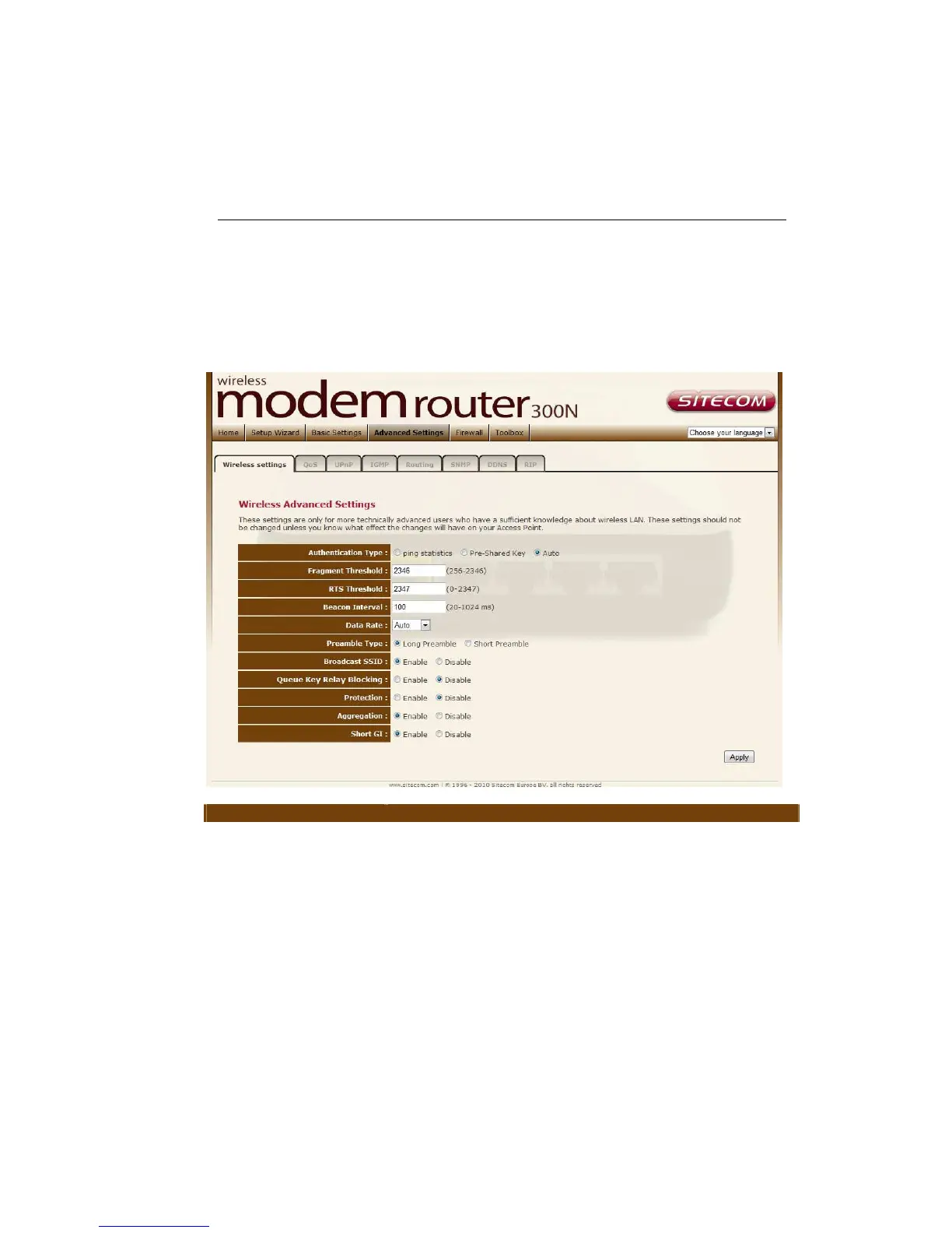 This page allows advanced users who have sufficient knowledge of wireless LAN.