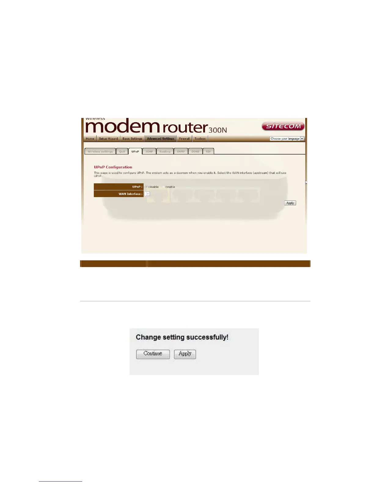 Press ‘Continue’ to save the settings made and back to web management