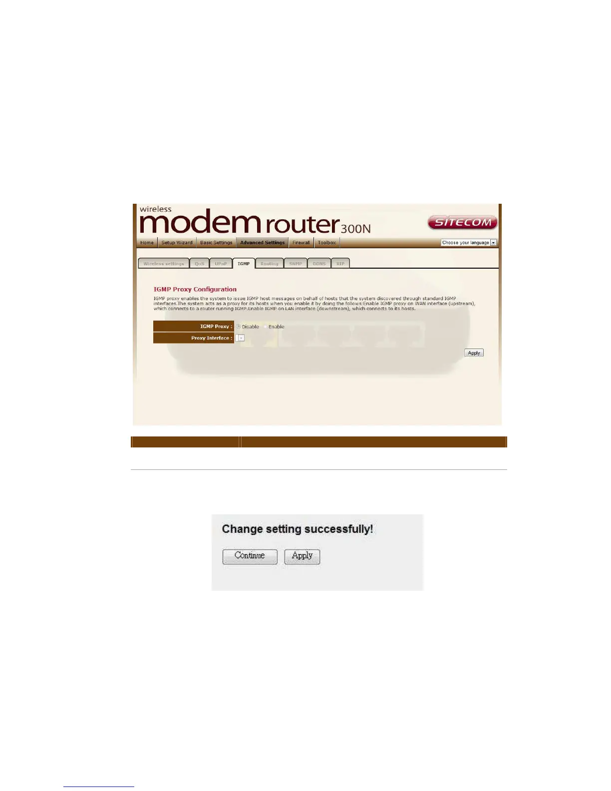 Press ‘Continue’ to save the settings made and back to web management
