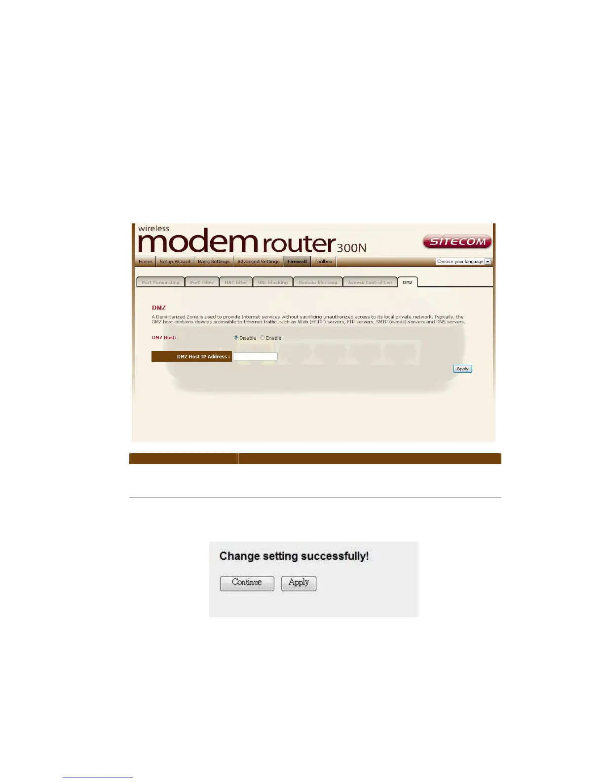 Press ‘Continue’ to save the settings made and back to web management