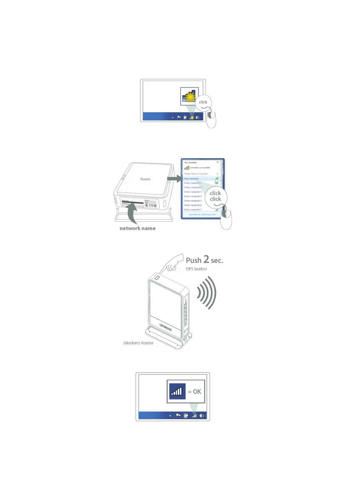 Push the OPS Button on the router. Keep the button pushed for 0-5 seconds.