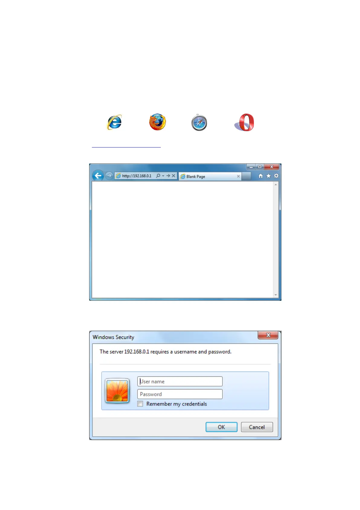 • Type user name and password. The default username is admin, the password