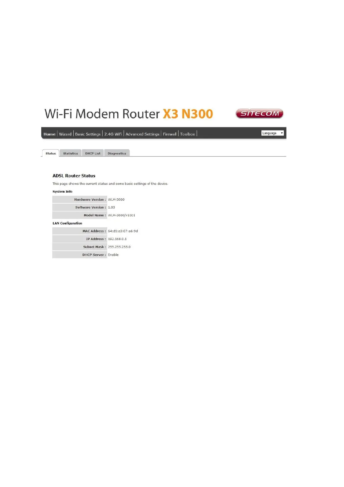 modem/router: the UP time, hardware information, serial number as well as firmware