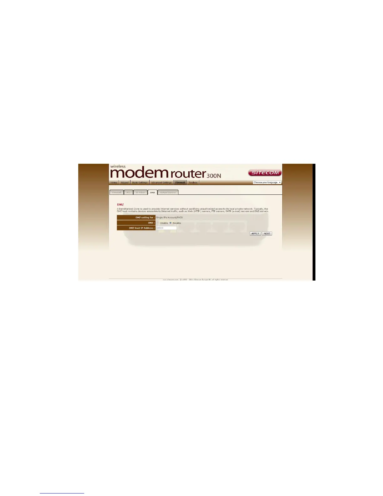 the internet in the DMZ Host IP address. Click Apply to save and apply the