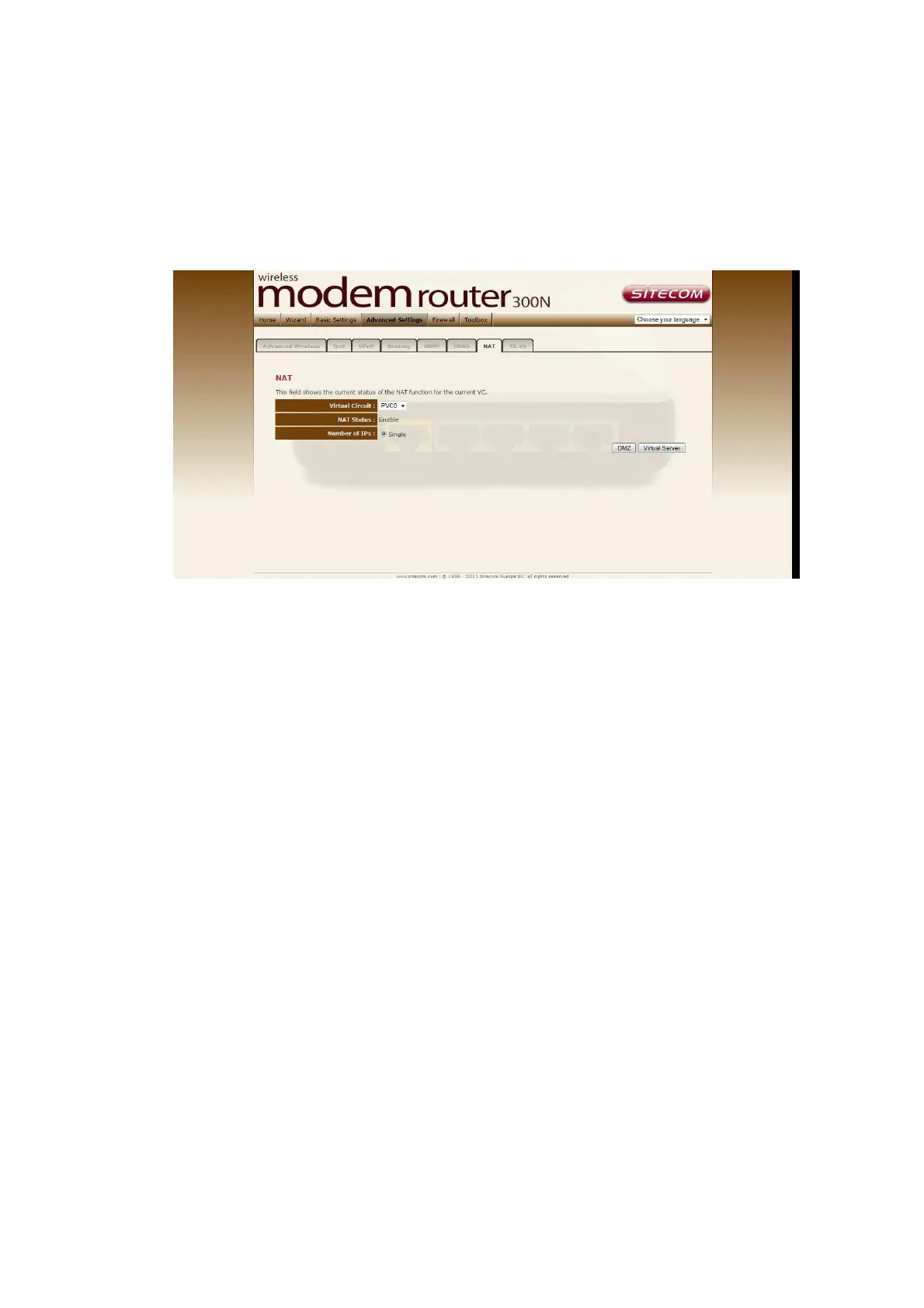 Here it’s possible to set Virtual server or DMZ settings for each virtual circuit.