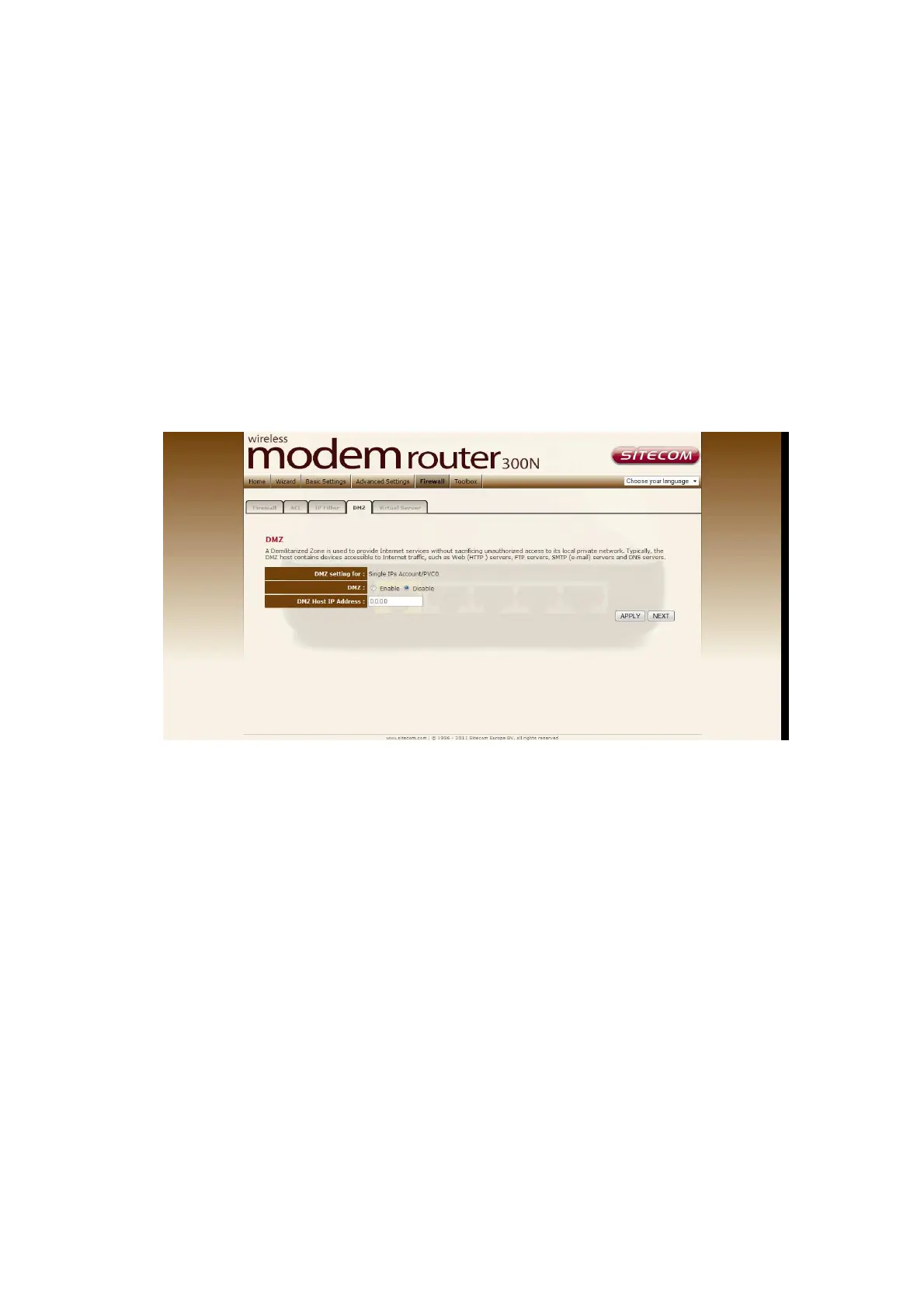 the internet in the DMZ Host IP address. Click Apply to save and apply the