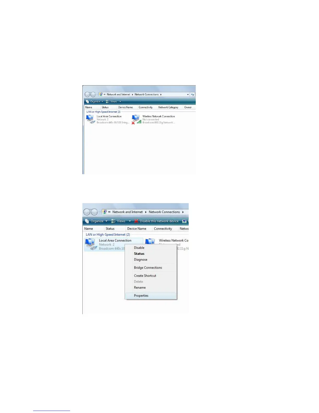 Right-mouse-click on the [Local Area Connection]) icon, and select