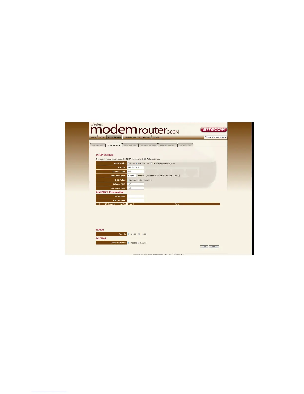 Configuration Protocol (DHCP). This page allows you to select the DHCP mode