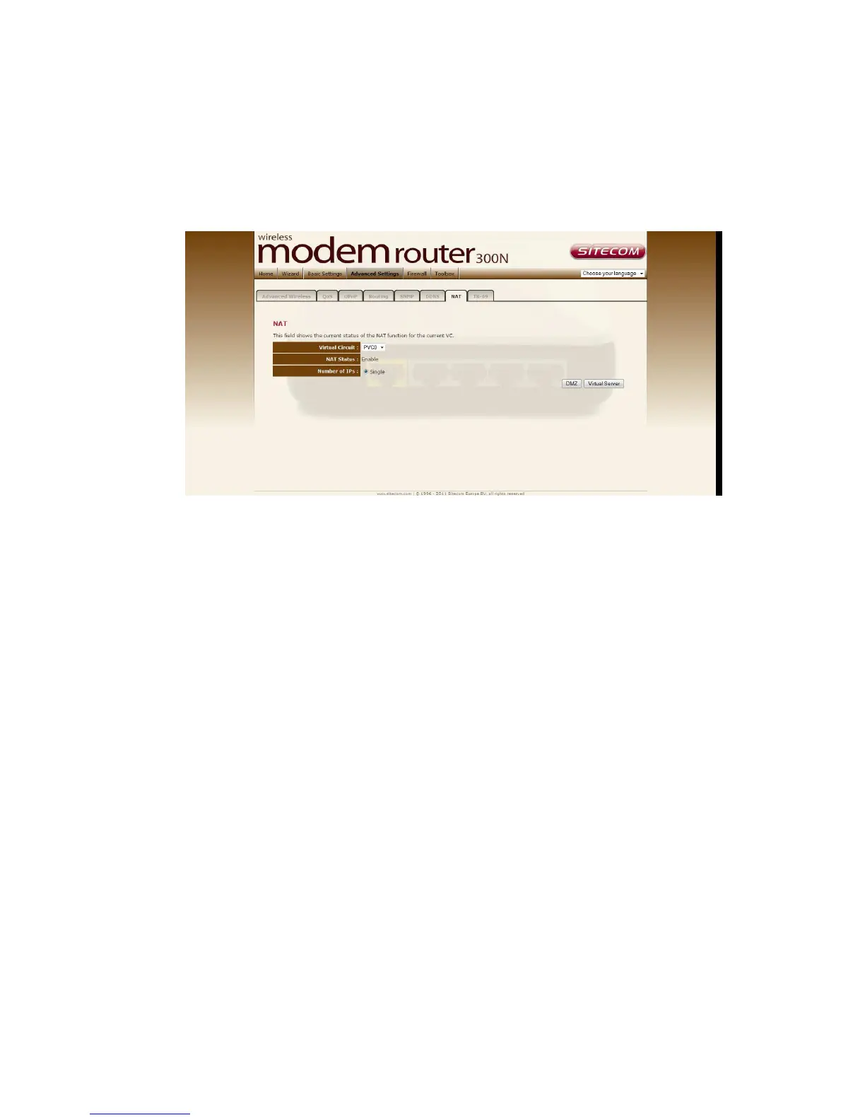Here it’s possible to set Virtual server or DMZ settings for each virtual circuit.