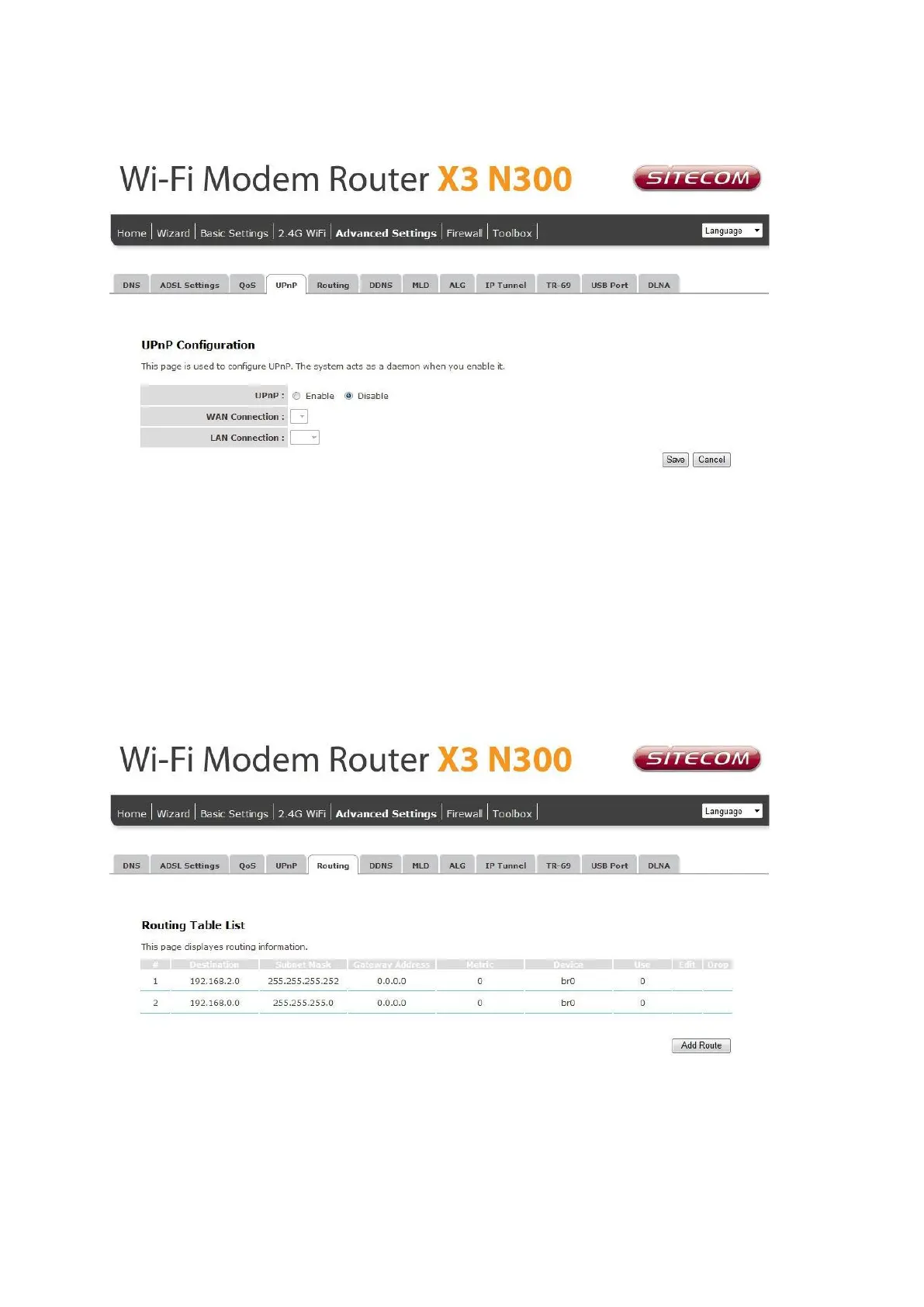 UPnP: Enable or disable UPnP feature.