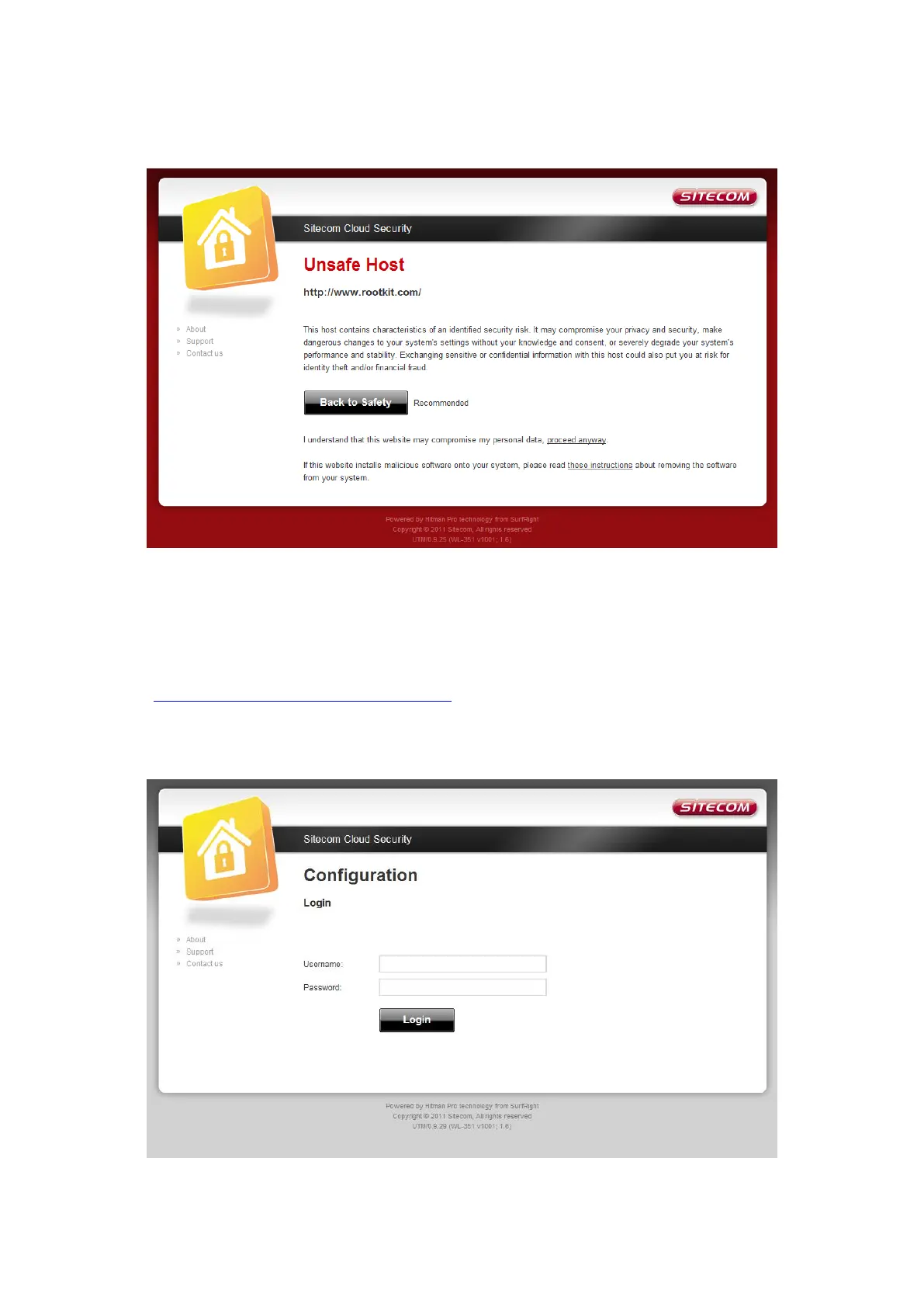 With the protection of unsafe websites activated the Sitecom Cloud Security will always