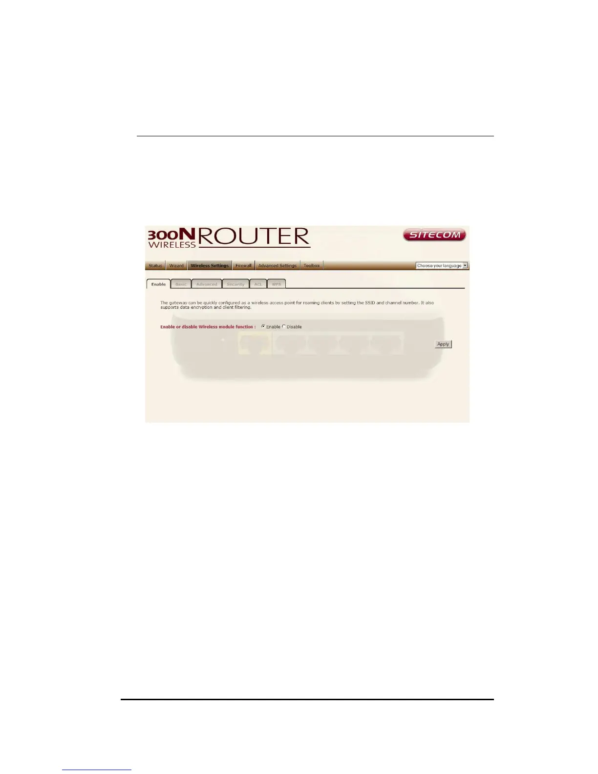 Sitecom WLR-1000 - Wireless Settings; Wireless Function and Basic Settings