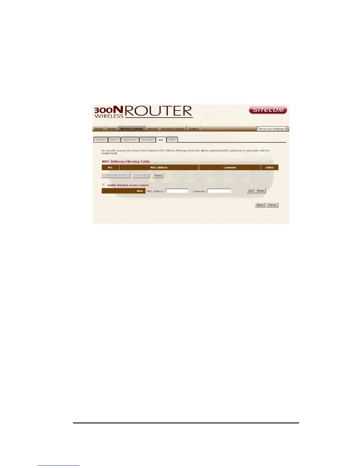 Adding an address into the list Enter the "MAC Address" and "Comment"