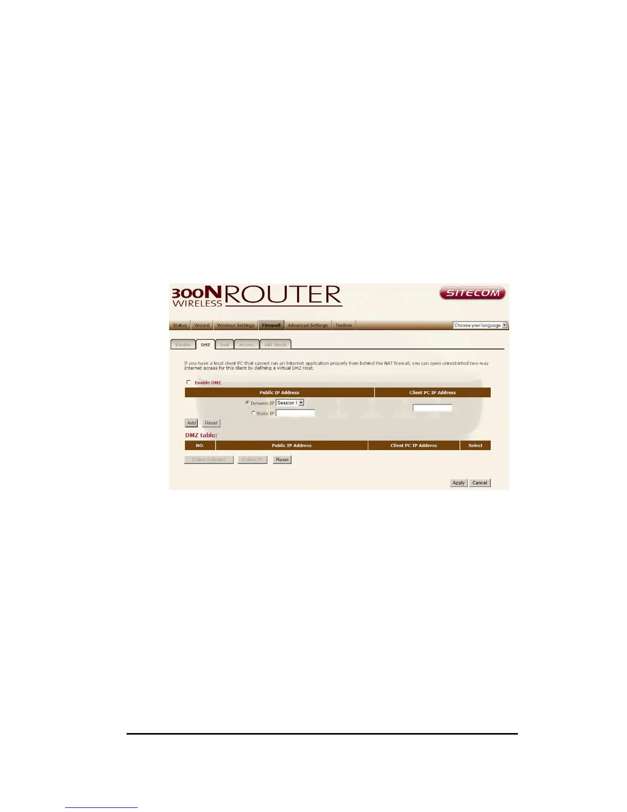 Enable DMZ Enable/disable DMZ