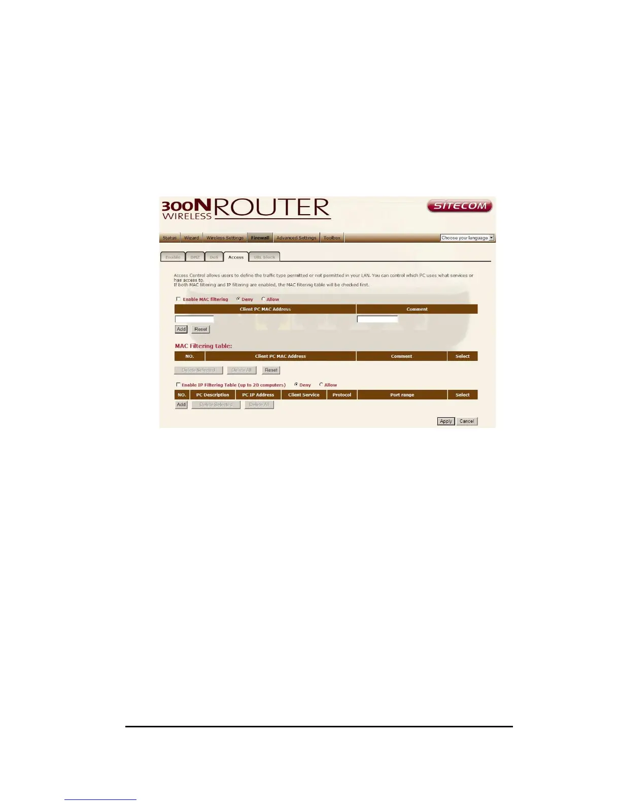 Deny If you select “Deny” then all clients will be allowed to access Internet